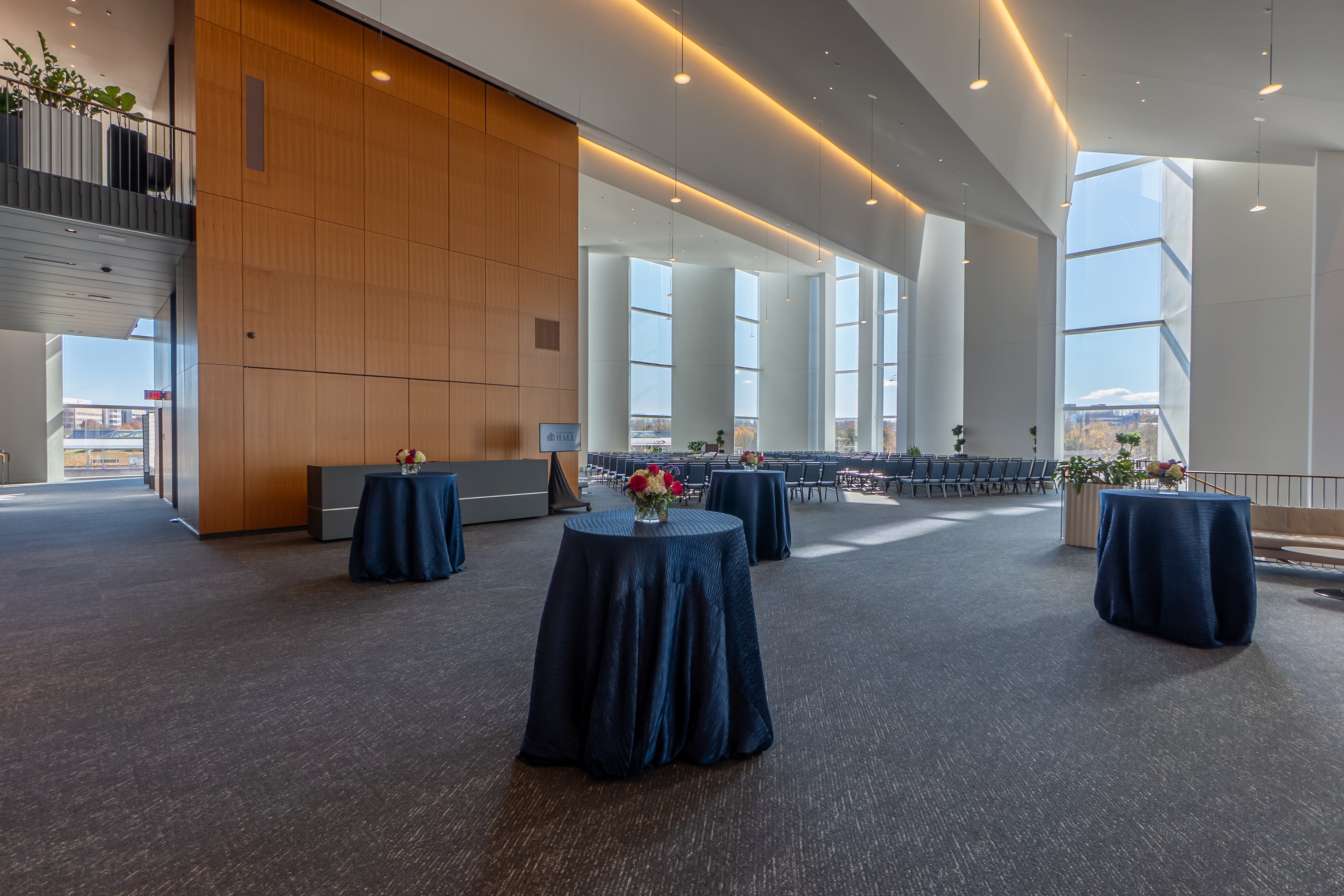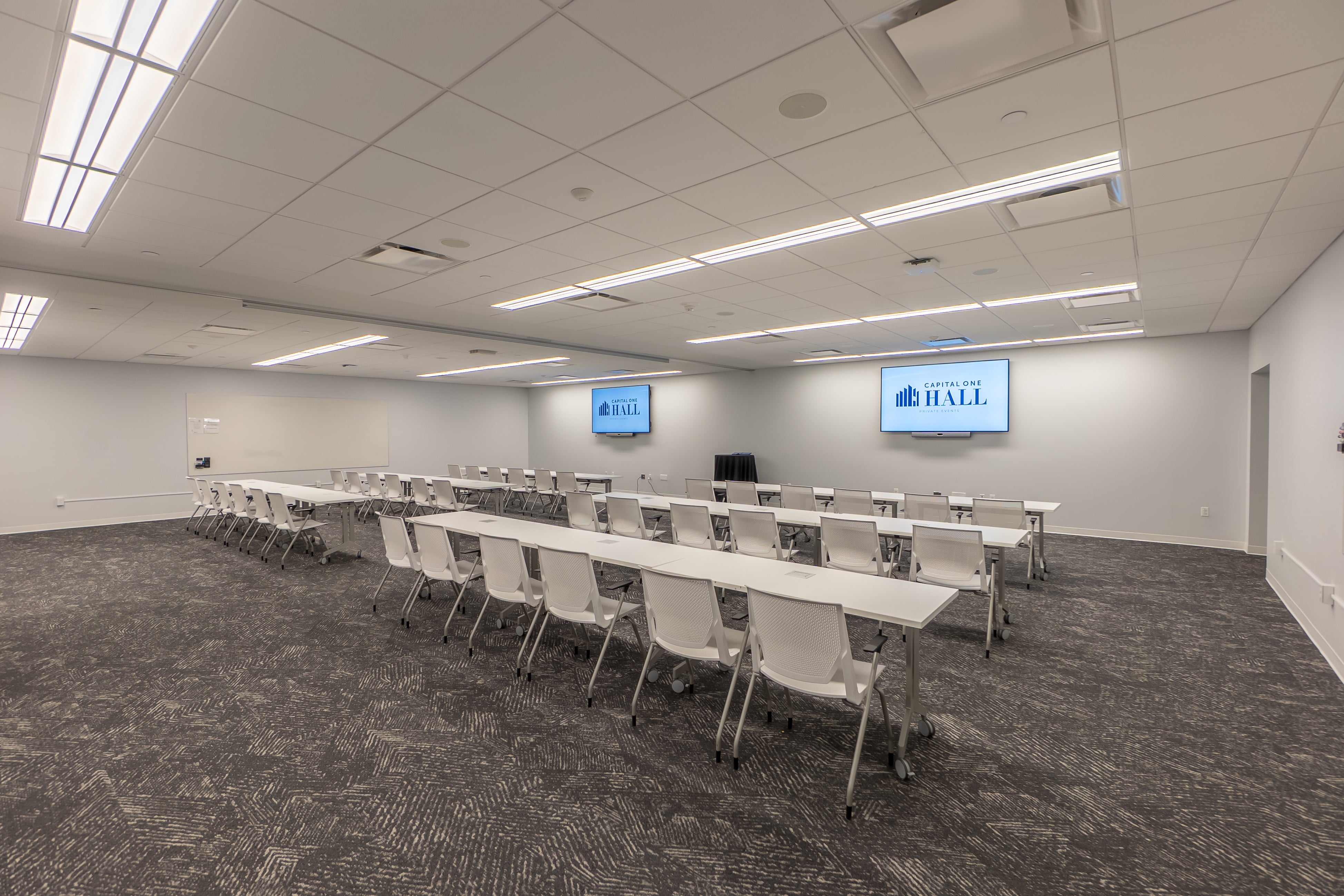 Fly with us through Capital One Hall! The venue has 70,000+ square feet of event space, including seven dynamic locations that can host events from 10 to 1,562 guests. Located (in or on?) Capital One Center, with easy access to the McLean Metro station, nearby hotels, dining, shopping, and parking.