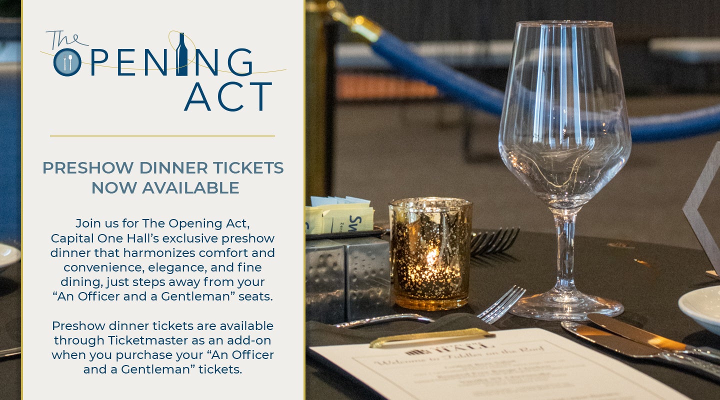 Based on the Oscar-winning film, AN OFFICER AND A GENTLEMAN is the timeless love story that celebrates triumph over adversity. The new musical features an iconic score including the Grammy and Oscar-winning #1 hit“ Up Where We Belong” (Joe Cocker/Jennifer Warnes), and your favorite 80’s hits including: “Higher Love” (Steve Winwood), “Owner of a Lonely Heart” (Yes),“Love is a Battlefield” and “Invincible” (Pat Benatar), “Lost In Your Eyes” (Debbie Gibson), “Right Here Waiting” (Richard Marx),“Venus” (Bananarama), “I Can’t Hold Back” (Survivor), “Never Surrender” (Corey Hart), “Do The Walls Come Down” (Carly Simon), “Fly By Night” (Rush), “Hold On to Your Dream (Rick Springfield), “Overkill”(Men at Work), “Renegade” (Styx), and more!